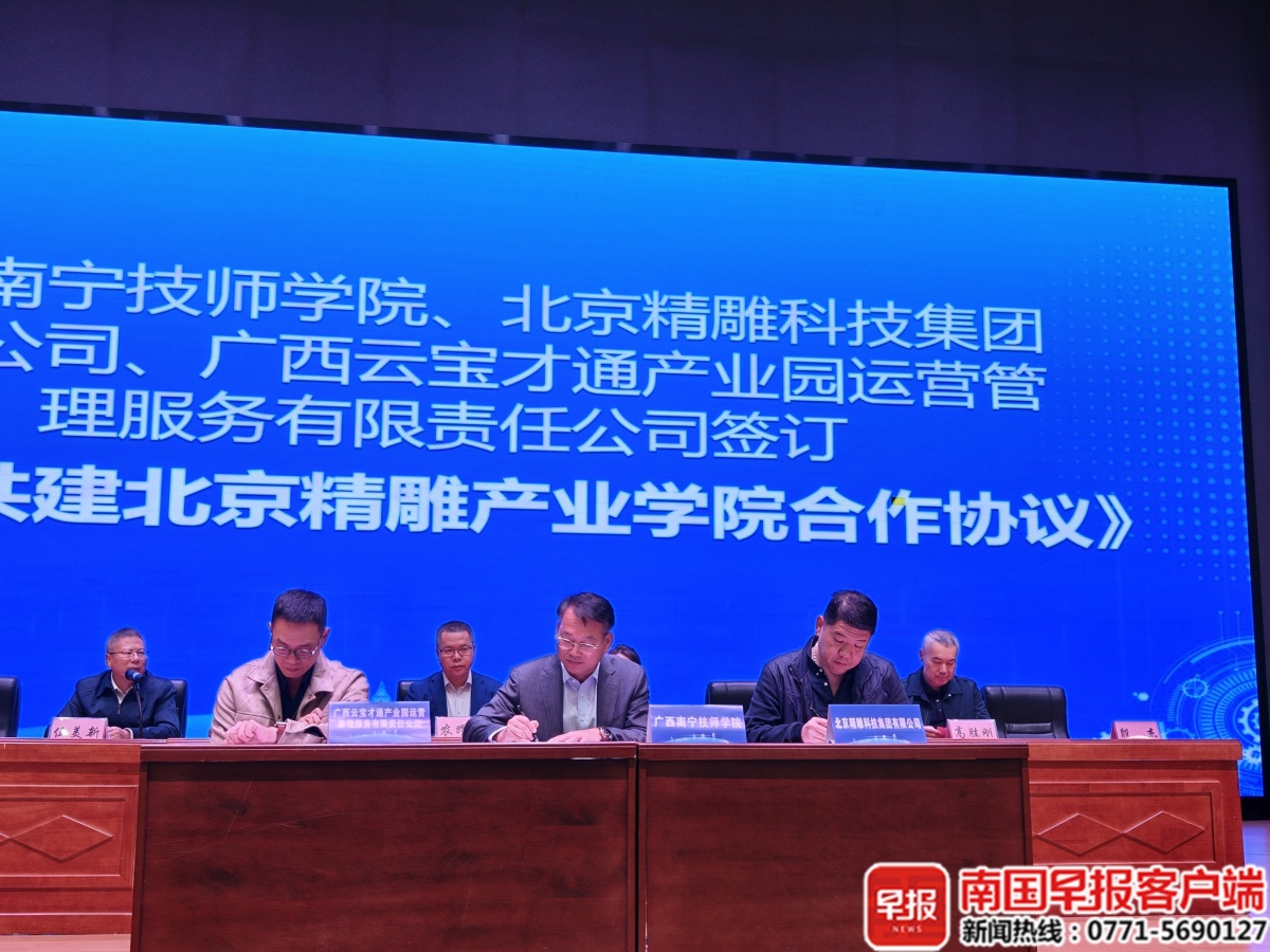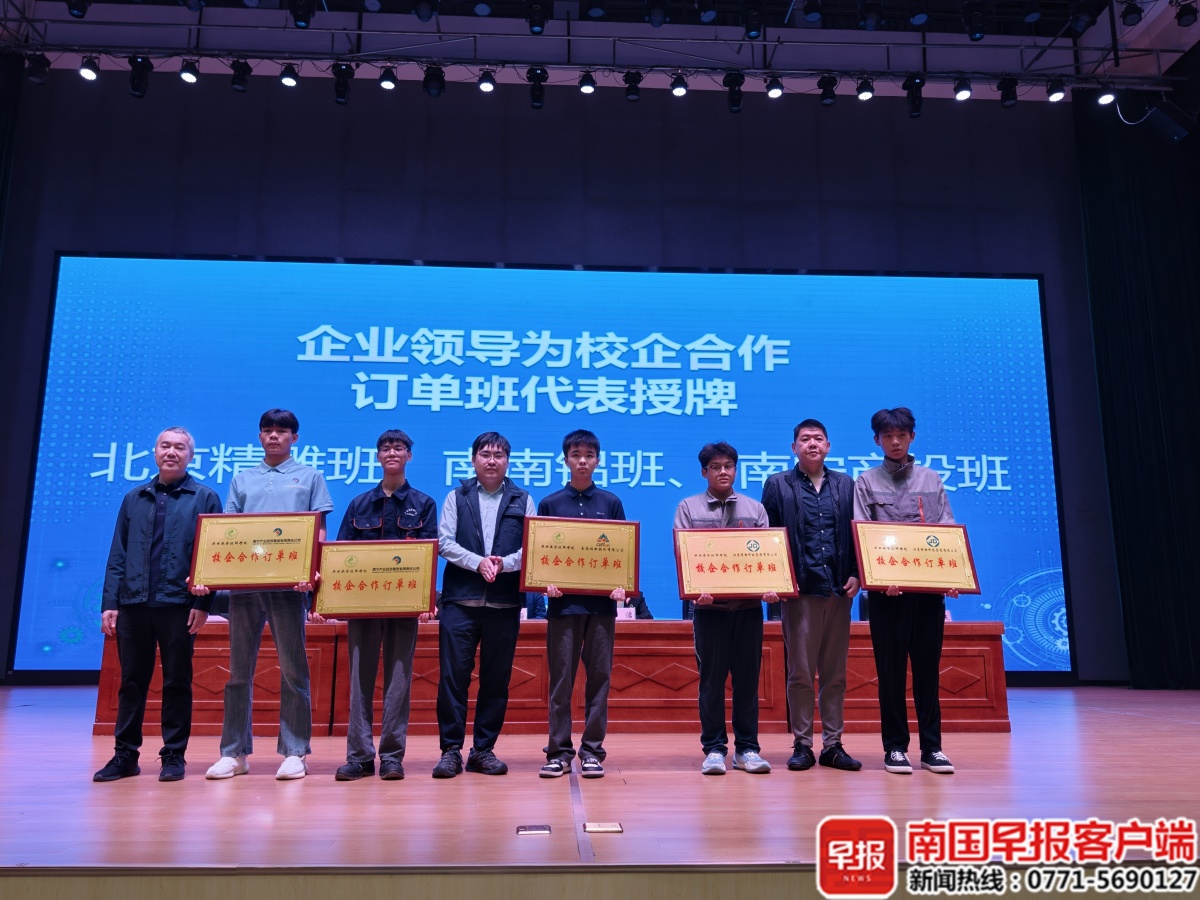 活动现场,广西南宁技师学院与南宁产投华创开展有限职责公司等7家企业会集签约,现场还进行了“北京精雕高技术人才教育训练基地”揭牌。在校企协作订单班授牌典礼上,“北京精雕班”“南南铝班”等班级学生代表从企业负责人手中接过班牌,标志着“入学即入企”的培育形式全面落地。